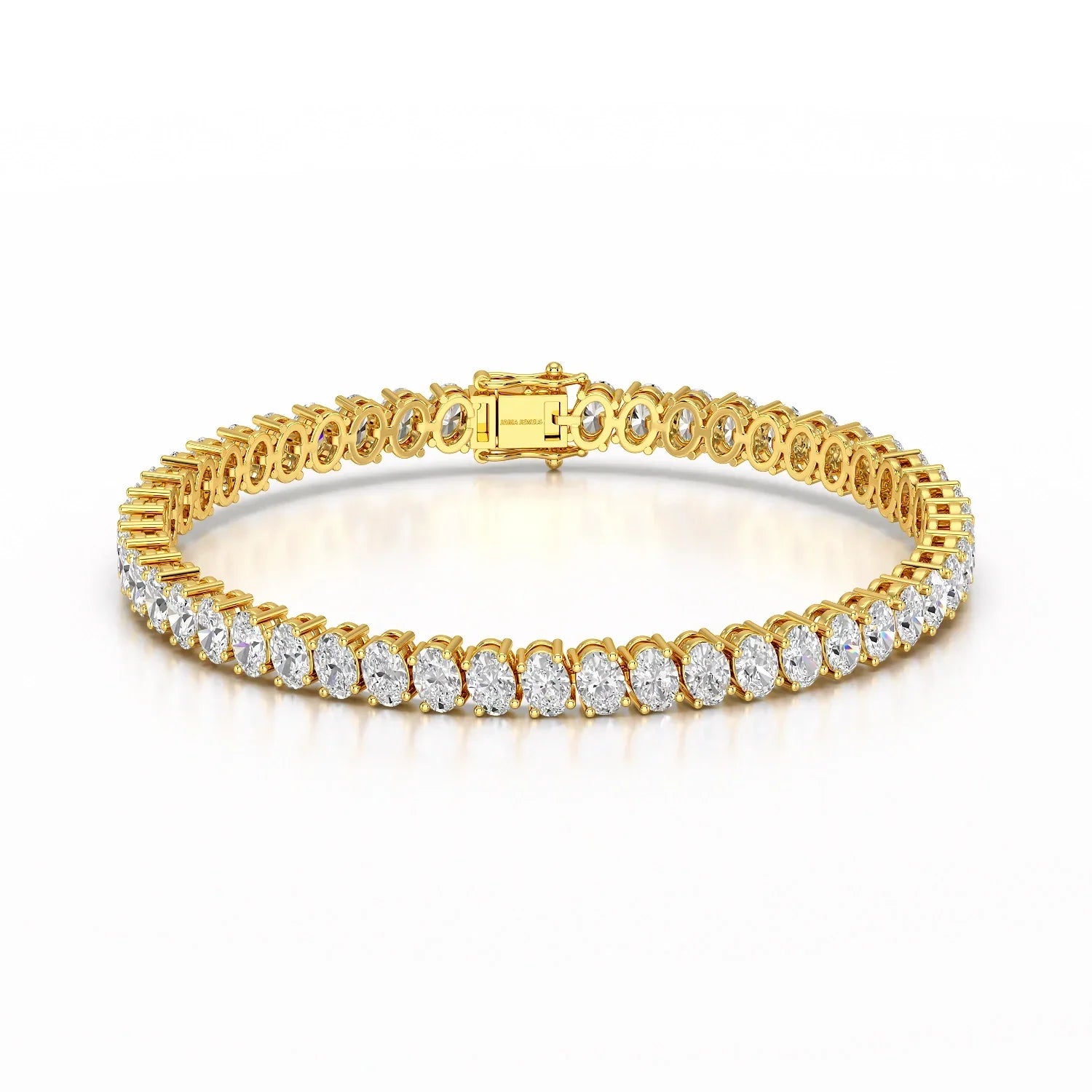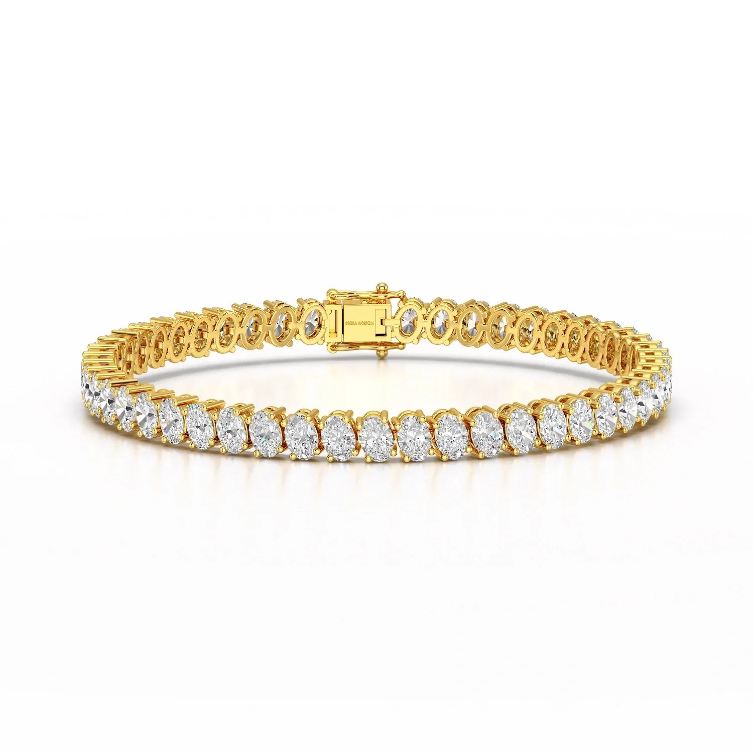 Introducing the 12.25 CT Oval Lab Grown Diamond Tennis Bracelet by Jama Jewels – where elegance meets ethical luxury. Adorn your wrist with the shimmer of lab-grown oval diamonds, totaling 12.25 carats. This exquisite tennis bracelet effortlessly combines sophistication and style, making it a timeless accessory for any occasion. Elevate your look with the brilliance of lab-grown diamonds, curated with precision by Jama Jewels.