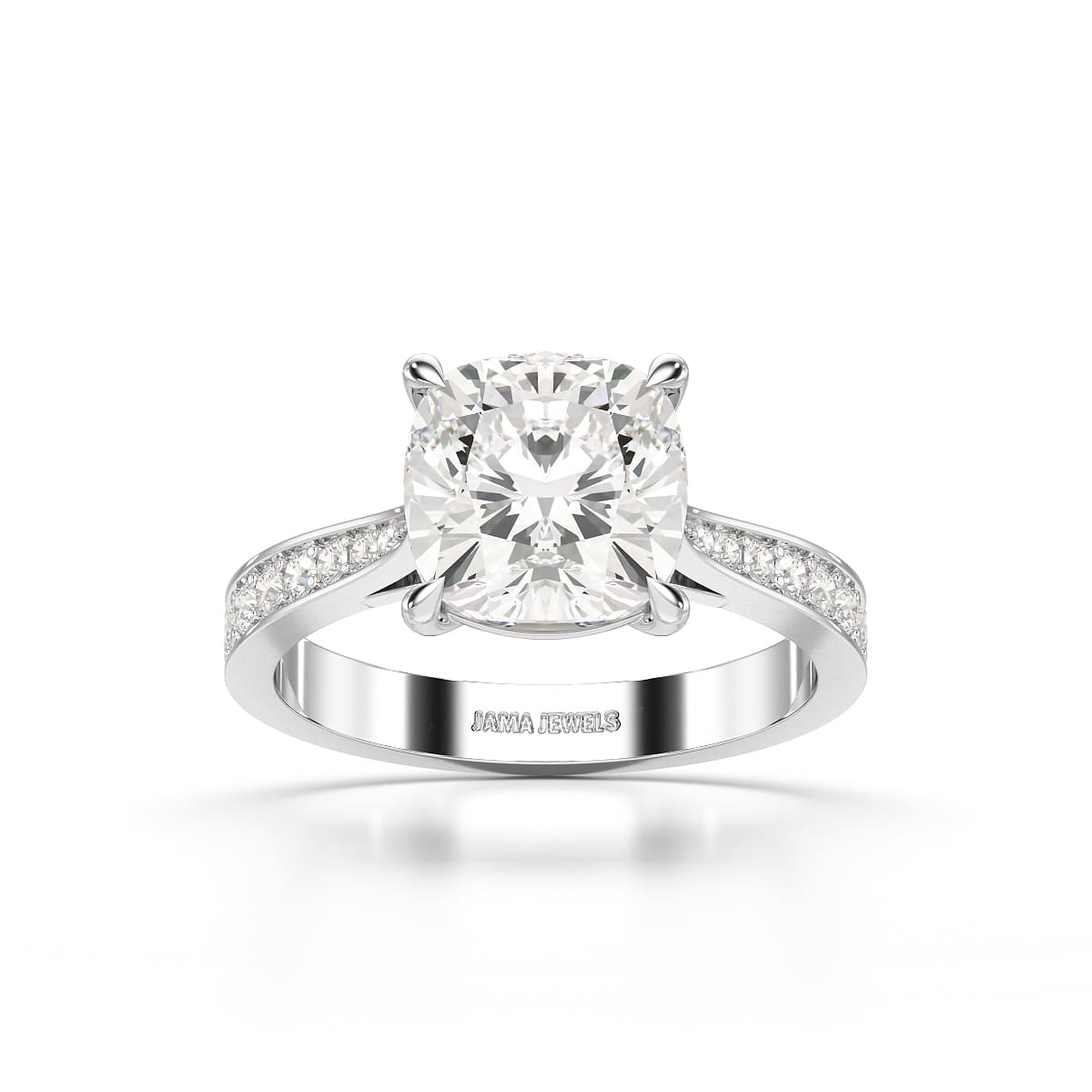 Discover timeless elegance with the 3.78 CT Lab Diamond Cushion Cut Solitaire Ring from Jama Jewels. This exquisite piece features a stunning cushion-cut lab-grown diamond, meticulously crafted for brilliance and fire. Set in a sleek and sophisticated band, the solitaire design highlights the beauty of the center stone, making it perfect for those who seek a classic yet modern touch. Ethically sourced and environmentally friendly, this ring offers the luxury of a high-quality diamond with a commitment to sustainability. Ideal for engagements, anniversaries, or special occasions, it symbolizes everlasting love and elegance.