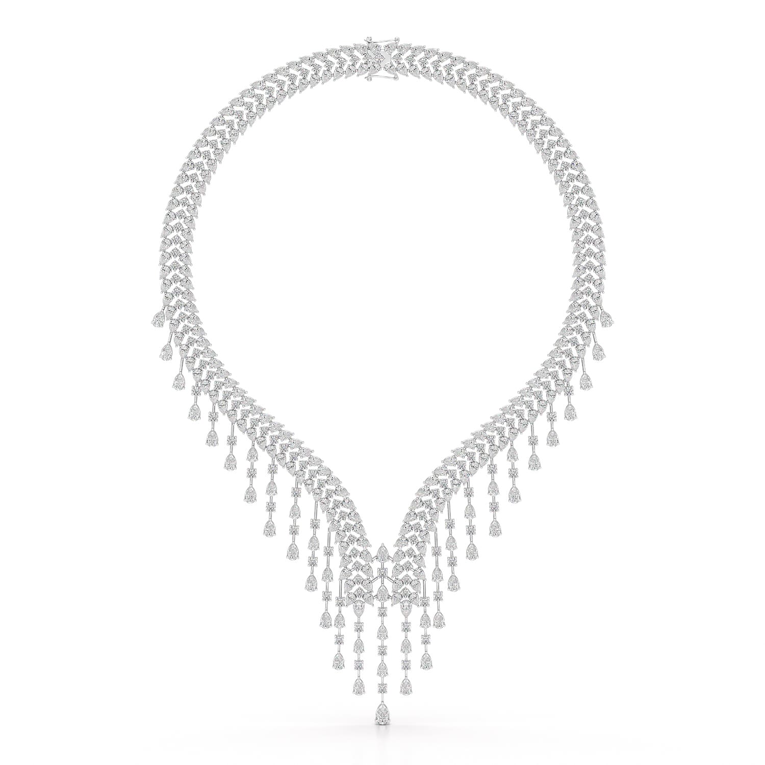 The 46.95 CT Lab Diamond Fancy Necklace from Jama Jewels is a stunning masterpiece of elegance and sustainability, featuring an array of ethically sourced, lab-grown diamonds meticulously set to radiate unparalleled brilliance. Combining timeless sophistication with modern design, this breathtaking necklace is the perfect statement accessory for any special occasion. Each diamond is carefully selected for its superior clarity and sparkle, making this luxurious piece a true celebration of beauty, craftsmanship, and ethical luxury.