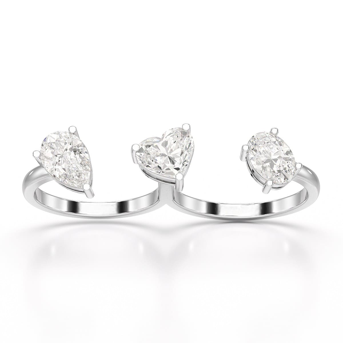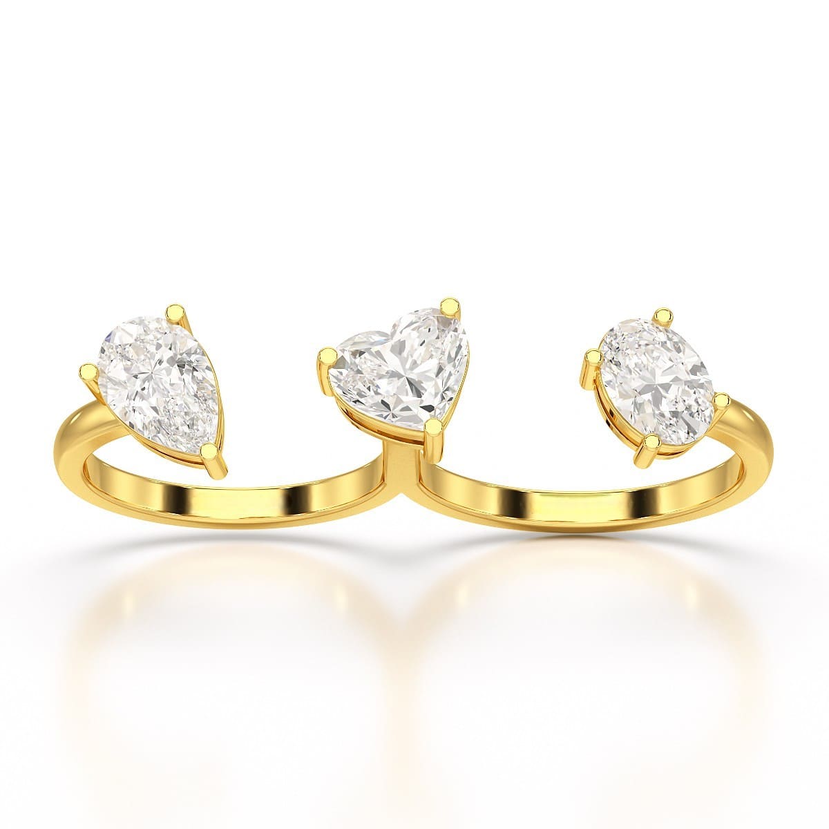 Make a bold statement with our Two Finger Fancy Shape Lab Diamond Ring. Featuring a stunning 2.61 CT of carefully crafted fancy-shaped lab diamonds, this unique design blends modern style with elegance. Perfect for adding a touch of luxury to any look.